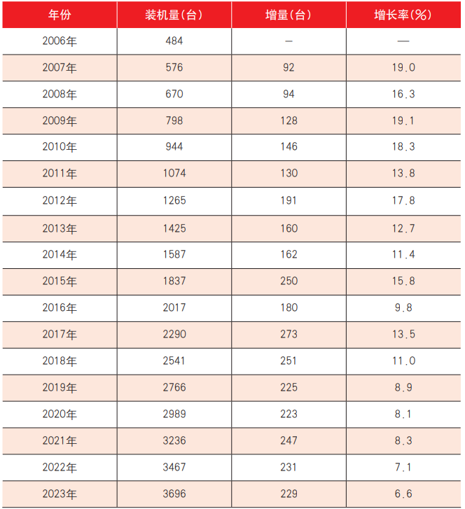 圖2 2006~2023年三大印刷產業帶裝機量情況