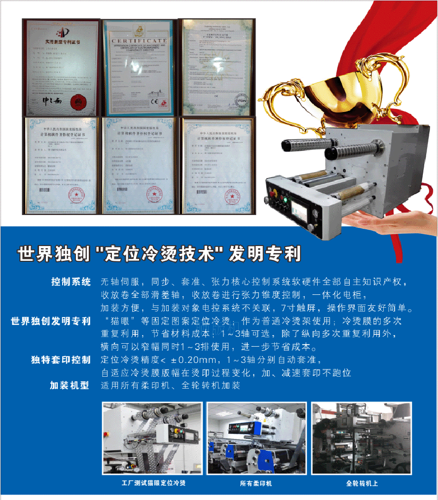 | 自動送紙、印刷、覆膜、模切、收廢、裁切。 |