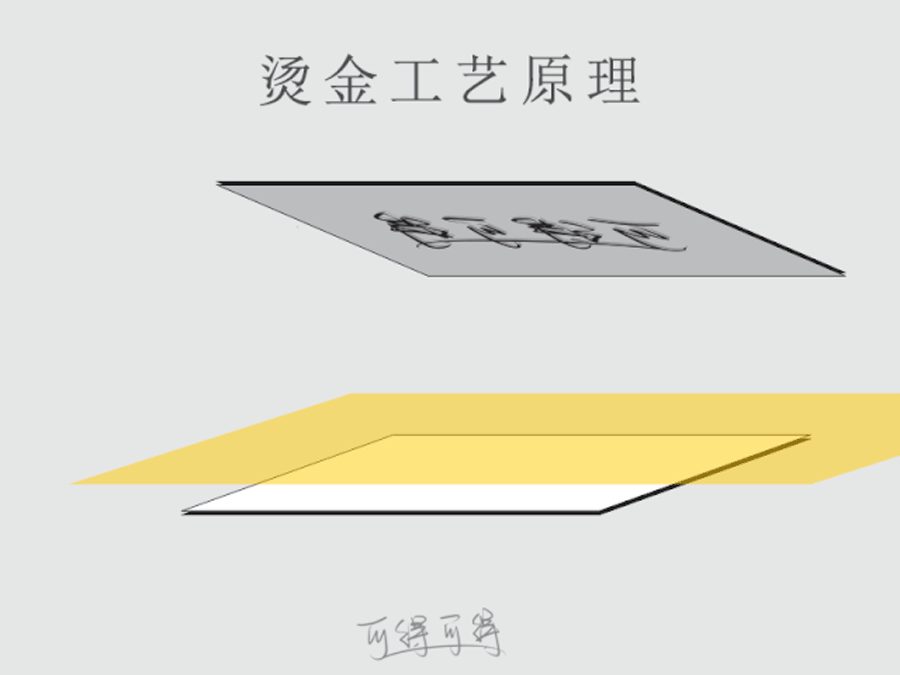那么,燙金也可以這樣理解:雕刻好的燙金版就是印章,使用的電化鋁金箔就是印油,用力將金箔蓋到紙張上,就完成了燙金的整個(gè)過(guò)程。